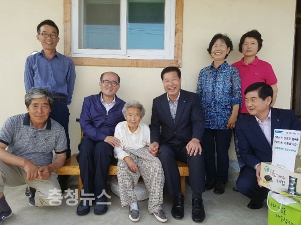 농협 충남지역본부(본부장 유찬형)는 27일 농협 창립 제56주년을 맞아 충남 관내 최고령 조합원 댁을 방문하여 일상생활의 불편함이 없는지 보살펴 드리며 이웃사랑을 펼쳤다.