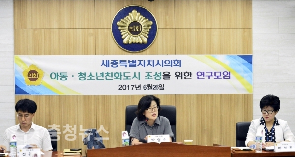세종특별자치시의회(의장 고준일) “아동․청소년친화도시 조성을 위한 연구모임(대표 박영송 의원)”은 26일 행정복지위원회 회의실에서 제4차 간담회를 개최했다.