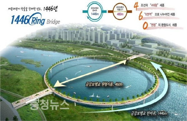 원형(Circle)의 주교량 형상은 행복도시의 환상형 도시구조를 형상화하여 계획하였고, 세종대왕이 한글을 반포한 1446년을 의미하여 교량의 연장을 1446m로 하였다.