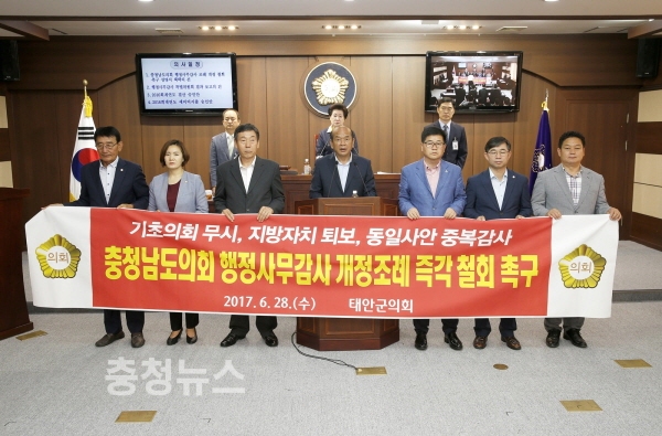 한편, 태안군의회는 이날 채택한 성명서 전문을 충청남도의화와 시·군의회에 송부할 예정이다.