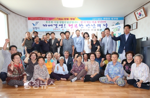 충남 보령시는 지난 28일 오후 청라면 장산2리 마을회관에서 연합건설산업(주)과 청라면 장산2리 마을간 자매 결연식을 가졌다고 밝혔다.