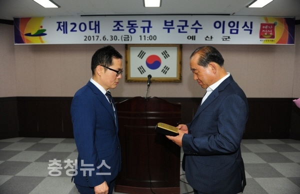 이임하는 조동규 부군수는 지난 2015년 7월 1일 취임해 2년 동안 부군수로 재임하면서 풍부한 행정경험과 발로 뛰는 섬김행정을 펼치며 ‘산업형 관광도시 활기찬 예산’을 건설하는 데 이바지했다는 평가를 받았다.