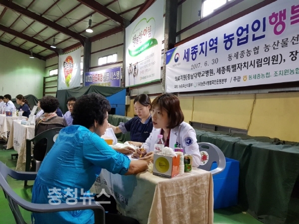 이날 충남대학교 병원 의료봉사는 세종지역(동세종, 조치원, 세종동부) 고령농업인 300여명을 대상으로 무료진료를 실시했다. 내과, 정형외과, 마취통증과, 재활의학과 등 주로 농업인의 고질적인 질환을 진료하였으며