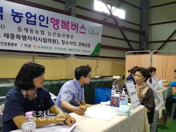 농협 충남지역본부(본부장 유찬형)는 30일 세종지역에서 충남대학교병원 의료봉사단 40여명과 함께 농업인 행복버스를 진행했다.