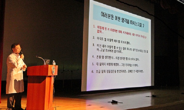 이날 행사는 암 환자들에게 희망과 용기를 주고자 마련된 것으로, △암 치료와 스트레스 관리(정신건강의학과 이창화 교수) △행복한 여자로 살기(산부인과 황인택 교수) △유방암 극복하기(유방갑상선외과 강윤중 교수) △생활 속 암 예방법(방사선종양학과 윤선민 교수) 등에 대한 강의가 진행됐다. 또 ‘웃음과 함께하는 힐링 타임’ 코너를 통해 참석자들에게 웃음과 기쁨을 선사했다.