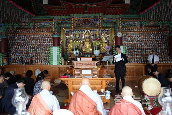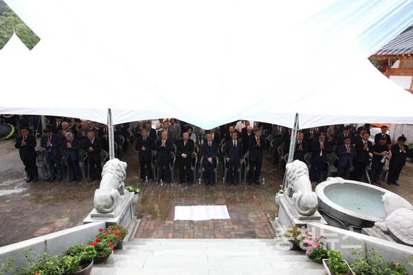 故 이인구 계룡건설 명예회장의 49재가 2일 오전 대전 대덕구 연축동 계족산 죽림정사에서 가족과 회사 임직원들이 참석한 가운데 거행됐다.