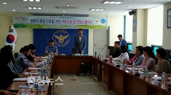 충남 아산시(시장 복기왕) 한국자유총연맹아산시지회 아산시북한이탈주민정착지원센터(회장 김윤태)의 행복한 동행은 지난 6월 29일 아산경찰서 소회의실에서 행복한 동행 가족을 위한 역량강화 및 정보소통마당을 개최했다.