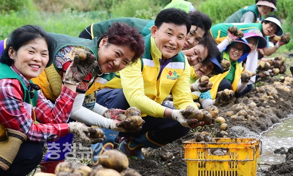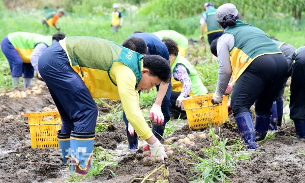 (사)중구자원봉사센터(센터장 정난호) 주관으로 진행된 감자수확 자원봉사에는 박용갑 청장과 자원봉사자들이 참여해 3000㎏의 감자를 수확해 17개 동별 저소득가정 300세대에 전달했다.