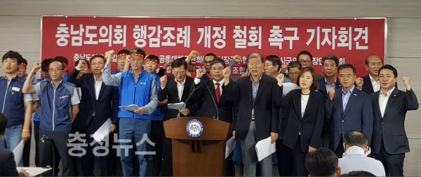 충남도의회 행감 조례 개정 철회 촉구 기자회견 / 충청뉴스 최형순 기자