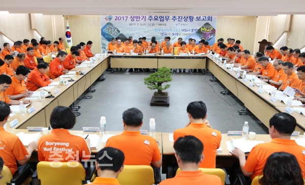 시에서는 금년 상반기는 극심한 가뭄과, AI 등 힘들고 어려운 일이 많았지만 신 해양시대 선제적 대응을 위한 환황해 전략사업단 신설과 장항선 복선 전철과 보령선 철도의 제19대 대선공약 반영, 보령신항 항만시설용 부지조성사업 실시설계 등 글로벌 해양관광・스포츠 명품도시로 자리매김 하기 위한 가시적인 성과를 올렸다.