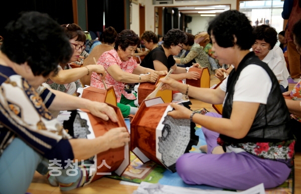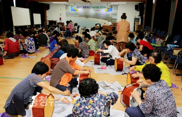 이번 기술전달 연찬회에서는 각 읍·면 생활개선회원 총 320명을 대상으로 지역 농·특산물을 활용한 ‘곡물바 만들기’와 전통공예품 ‘팔각상 만들기’ 등을 교육하고 있다.