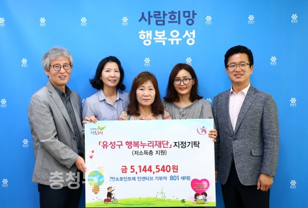 대전 유성구(구청장 허태정)는 5일 2016년 하반기에 발생된 탄소포인트제 기부 참여자들의 인센티브를 유성구 행복누리재단을 통해 지정기탁 받았다고 밝혔다.