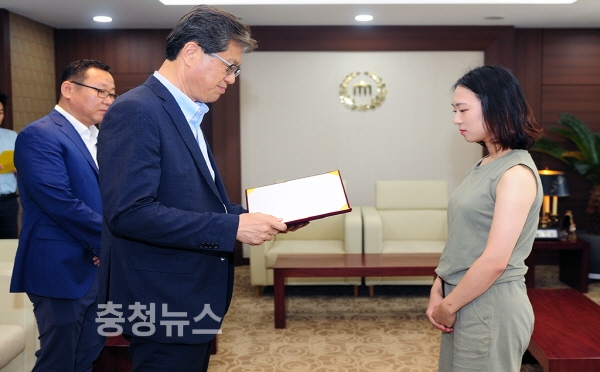 충남대는 지난해 9월, 브리즈번 시청과 호주 퀸즐랜드대학 테솔․평생교육원(ICTE; Institute of Continuing & TESOL Education))과 공동으로 매년 충남대 학생 1명에게 퀸즐랜드 대학에서 5주간의 어학연수 과정과 1주간의 브리즈번 시청 인턴십 과정을 무료로 제공하는 장학금을 수여하는데 합의한 바 있다.