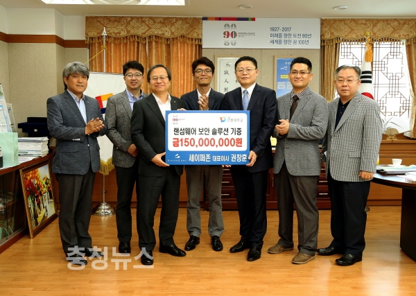 한밭대(총장 송하영)는 (주)세이퍼존(대표이사 권창훈)으로부터 1억 5천만원 상당의 랜섬웨어 대응 보안솔루션을 기증받았다.