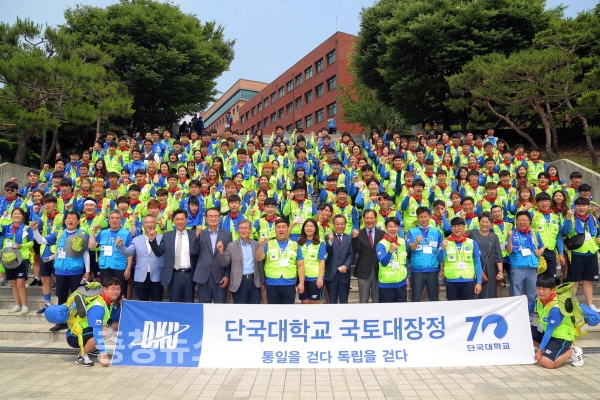 단국대는 천안캠퍼스에서 6일 개교 70주년 기념 국토대장정 발대식을 열었다.