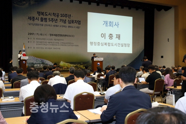 이충재 행복청장은 6일 행정중심복합도시 착공 10주년과 세종시 출범 5주년을 맞아 “행복도시는 전국에서 가장 아이들이 많고, 출산율이 높은 젊은 도시, 누구나 살고 싶고 주민 만족도가 전국 1위고, 성장속도가 가장 빠른 도시로 각광받는 등 새로운 도시문화가 만들어 지고 도시역사가 새롭게 써가고 있다”고 밝혔다.