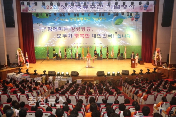 충남 보령시는 7일 보령문화예술회관 대공연장에서 ‘함께하는 성평등, 모두가 행복한 대한민국!’이라는 주제로 제22회 양성평등주간 기념행사를 개최했다.