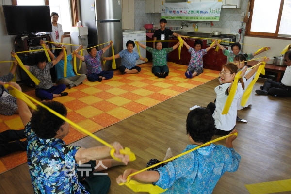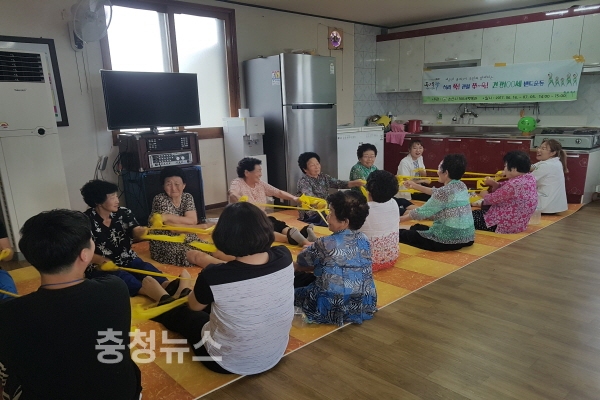 마을별 건강 특화프로그램 일환으로 지난 6월 14일부터 7월 5일까지 채운면 용화 3리 경로당에서 운영한 ‘허리 쭉! 관절 쭈욱! 건강100세 밴드 운동’이 주민들의 큰 호응속에 마무리 됐다.