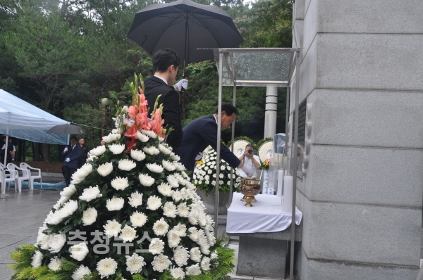 한국도로공사 박승갑 경영본부장이 헌화와 분향을 하고 있다.