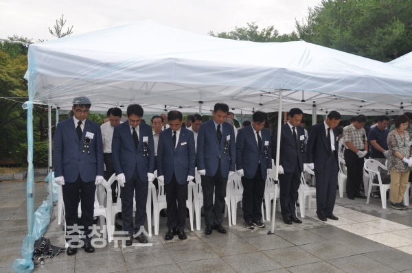 비가 오는데 치러진 위령제에서 건설 순직자들의 순고한 희생에 감사하며 편안한 안식을 기리는 추도와 묵념이 이어졌다.