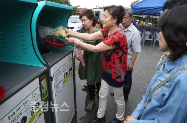 이번 시연회는 주민들에게 종량기 배출방법 및 수수료 부과방식 등을 설명하고, 사용법에 대한 교육을 통해 주민들이 편리하게 종량기를 이용해 음식물쓰레기를 배출할 수 있도록 하기 위해 마련됐다.