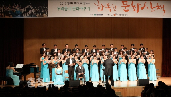 ‘우리 동네 문화 가꾸기’를 테마로 지난 4일 대전시립합창단, 6일 대전시립무용단의 공연을 선보였던 화목한 문화산책 첫 주 일정이 입추의 여지없이 들어선 관객들의 뜨거운 호응과 함께 성황리에 마무리된 바 있다.