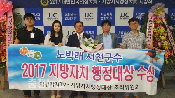 노박래 서천군수가 지난 10일 국회의원회관 대회의실에서 열린 ‘2017 지방자치 행정대상’ 시상식에서 지방자치 행정부문 ‘대상’을 수상했다.