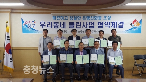 대전 중구 은행선화동행정복지센터(동장 강연용)는 11일 청사내 회의실에서 깨끗하고 살기좋은 은행선화동 만들기 자율참여 분위기 확산을 위해 관내 학교, 금융기관 등 9개 기관․단체와 ‘함께하는 깨끗한 마을! 우리동네 클린사업 업무협약’을 체결했다.