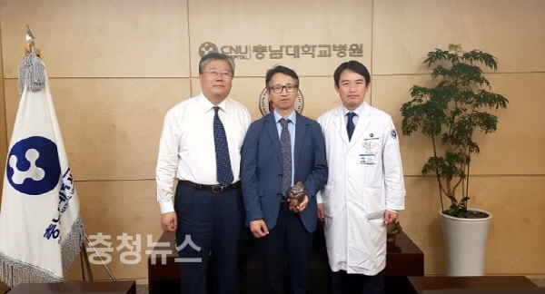 충남대학교병원(원장 송민호)은 충청외과의원 김재호·김찬기·김영일 원장이 11일 충남대학교병원발전기금(외과 발전기금)으로 1000만 원을 기부했다.