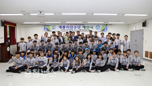충남 계룡시(시장 최홍묵)가 지난 11일 시청 회의실에서 제69회 충남도민체육대회 선수단 해단식을 가졌다.