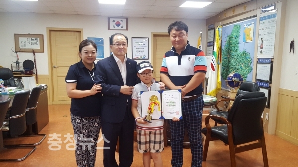 이석화 청양군수와의 각별한 인연으로 화제가 됐던 골프신동 이수민(서해 삼육초 2학년) 선수가 지난 11일 또 다시 이 군수와 만났다.