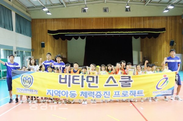 아산무궁화프로축구단은 지난 13일, 둔포초등학교에서 일일 축구 교실 프로그램인 ‘비타민 스쿨’을 통해 어린이들과 즐거운 시간을 보냈다.