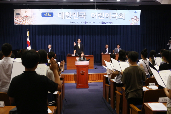 이날 열린 「제13회 대한민국어린이국회」 는 정세균 국회의장의 개회사를 시작으로 ‘어린이의 눈으로 본 사회 문제점’에 대한 어린이 의원들의 질문 및 박춘란 교육부차관의 답변을 듣는 “정부에 대한 질문·답변” 시간을 갖고 우수 법률안에 대한 시상식도 진행했다.