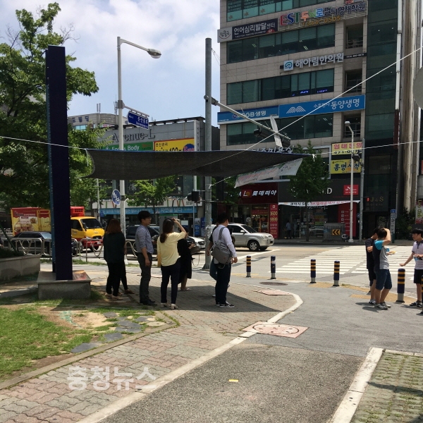 대전 서구(구청장 장종태)가 연일 계속되는 폭염 속, 뙤약볕 아래서 신호를 기다리는 보행자들을 배려하기 위해 ‘그늘막 쉼터’를 설치해 주민들로부터 좋은 반응을 얻고 있다.