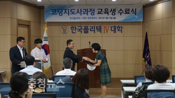 한국폴리텍IV대학 대전캠퍼스(학장 이인호)는 17일 대학본부 4층 세미나실에서 여성재취업 코딩지도사과정 수료식을 가졌다.