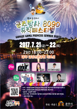 충남 공주시(시장 오시덕)가 오는 21일부터 22일까지 ‘2017 공주밤사(밤과음악사이) 8090 뮤직페스티벌’을 개최한다고 밝혔다.