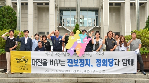 정의당 대전시당이 18일 오전 대전시청 북문 앞에서 3기 출범기자회견을 열었다.
