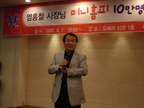 염홍철 중기특별위원장은 지난 8월15일 동구 어부동 핵심 조직책들과의 만찬에 이어 7일 오후 7시 둔산 오페라웨딩 홀에서 자신의 홈피에 10만 번째 방문 기념 일촌 모임을 기념하기위해 염사마 회원 200여명이 참석한 가운데 열렸다.