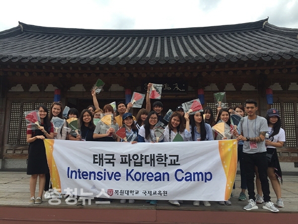 목원대학교(총장 박노권) 국제협력처는 한국어캠프에 참여하고 있는 태국 파얍대 유학생 20명이 대학관계자들과 어울려 전주 한옥마을과 천안 독립기념관을 방문하는 등 한국문화 체험에 나섰다고 19일 밝혔다.