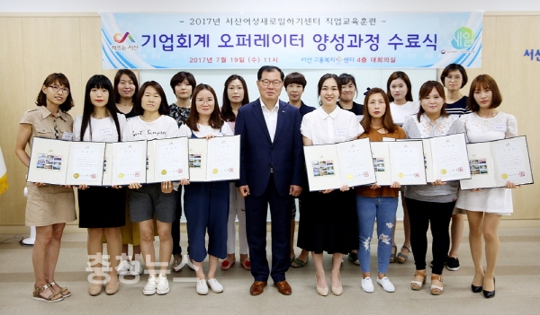 충남 서산시가 운영하는 서산여성새로일하기센터가 19일 고용복지플러스센터에서‘기업회계 오퍼레이터 양성과정’수료식을 개최했다.
