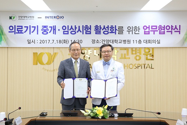 건양대병원(원장 최원준)은 18일 오후 병원 11층 대회의실에서 인터로조(대표이사 노시철)와 의료기기의 개발과 임상시험 협력을 위한 협약을 체결했다고 19일 밝혔다.