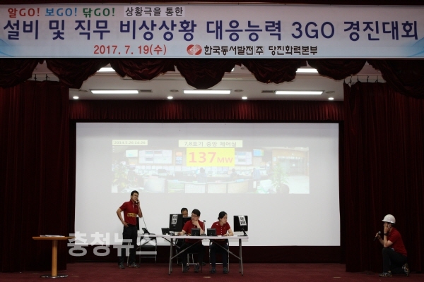 당진화력본부(본부장 박상준)는 지난 19일 본부 대강당에서 전 직원이 참석한 가운데 ‘설비 및 직무 비상상황 대응능력 3GO 경진대회’를 개최하였다고 밝혔다.