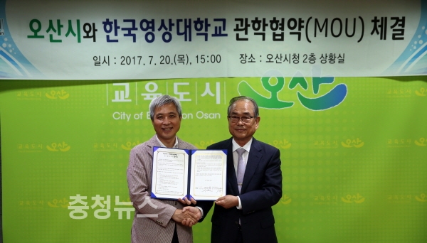 한국영상대학교(총장 유재원)와 오산시청(시장 곽상욱)이 지난 20일 오산시청 상황실에서 학생 교육역량 강화를 위한 협약을 체결했다고 21일 밝혔다.