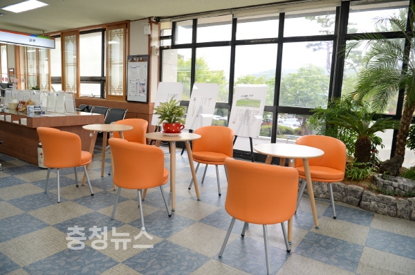 또한, 민원실 내 화사한 미니정원을 조성했으며, 북카페 및 갤러리를 조성해 ‘사진 및 시화전’을 비롯해 계룡산 도예촌 ‘철화분청사기’를 전시하는 등 문화가 있는 쾌적한 자연친화적 휴게 공간을 조성했다.