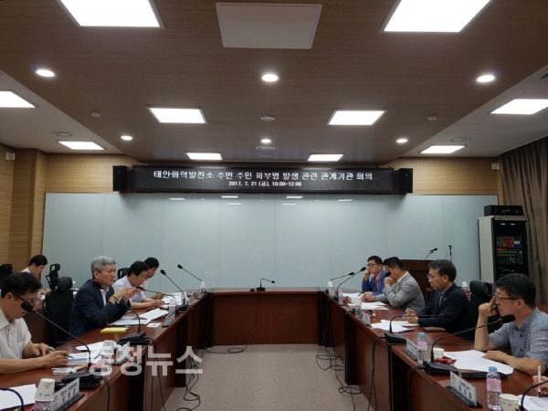 이에 도 보건환경연구원은 21일 연구원 중회의실에서 관련기관인 도 환경보전과, 태안군, 태안보건의료원 관계자와 단국대 피부과 교수 등이 참석한 가운데 합동회의를 개최했다.