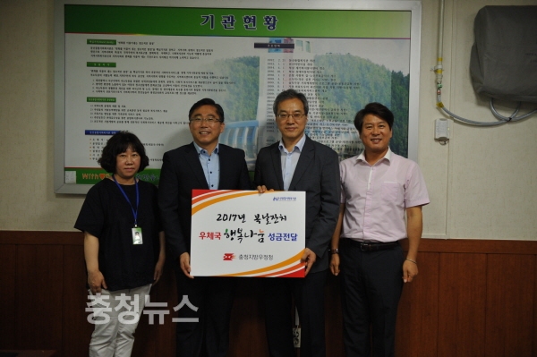 현재 충청지역 우체국에서는 38개의 봉사단이 활동중이며 행복나눔릴레이 봉사활동을 통해 무료급식, 독거노인 건강챙김활동, 소년소녀가장 생활비 지원 등 복지사각지대에 놓인 소외계층에 대한 다양한 사회봉사활동을 펼치고 있다.