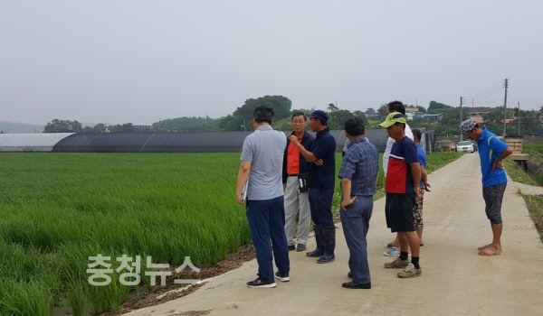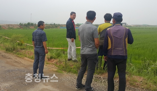 박찬규 농업기술센터 소장이 신암면 별리 일원에 드론을 이용한 벼 직파 재배 시범사업장을 방문해 현장지도를 실시