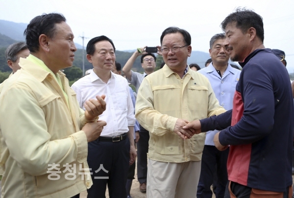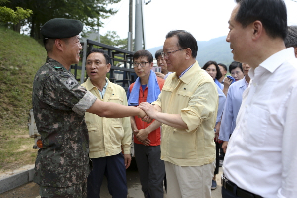 김부겸 행정자치부 장관은 22일 천안시 수해 현장을 방문 피해지역 주민들을 위로하고 피해와 복구 상황을 점검 신속한 복구 당부와 수해복구 참여자들을 격려 했다.
