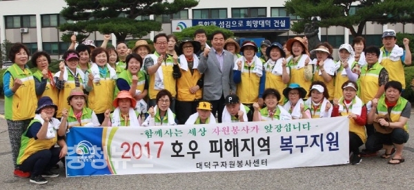 대덕구자원봉사센터(이사장 박수범)에서는 지난 22일 긴급피해 복구자원봉사자 40여 명이 참여한 가운데 집중호우로 피해를 입은 괴산지역 수해복구 지원에 나섰다.