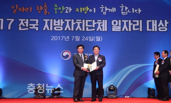 일자리 대상은 전국 지방자치단체를 대상으로 일자리 창출분야의 추진 성과와 단체장의 의지, 일자리 인프라 구축 등 5개 분야를 1, 2차에 나눠 평가해 일자리 창출에 우수한 성과를 거둔 자치단체를 선정하는 시상식이다.